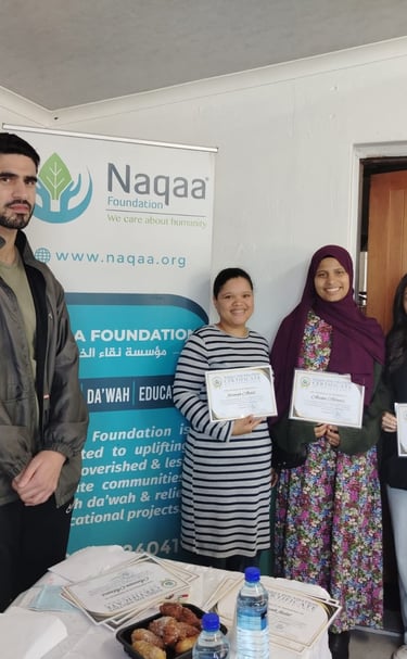 Naqaa Foundation is a community-based non-profit organization established in 2018, dedicated to uplifting lives and strengthening communities through meaningful and sustainable initiatives. Our work spans feeding and welfare support, Islamic education, da’wah, and the establishment of daily and Jumu‘ah salah services, directly impacting hundreds of individuals and families each year.
