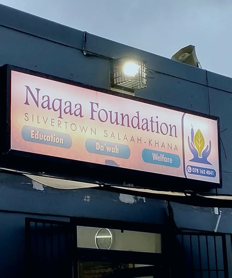 Naqaa Foundation is committed to serving the community through the preservation of salah, the delivery of quality Islamic education, active da‘wah, and meaningful welfare initiatives. We strive to uplift lives with dignity, compassion, and integrity by responding to community needs, nurturing knowledge, and fostering long-term positive impact.
